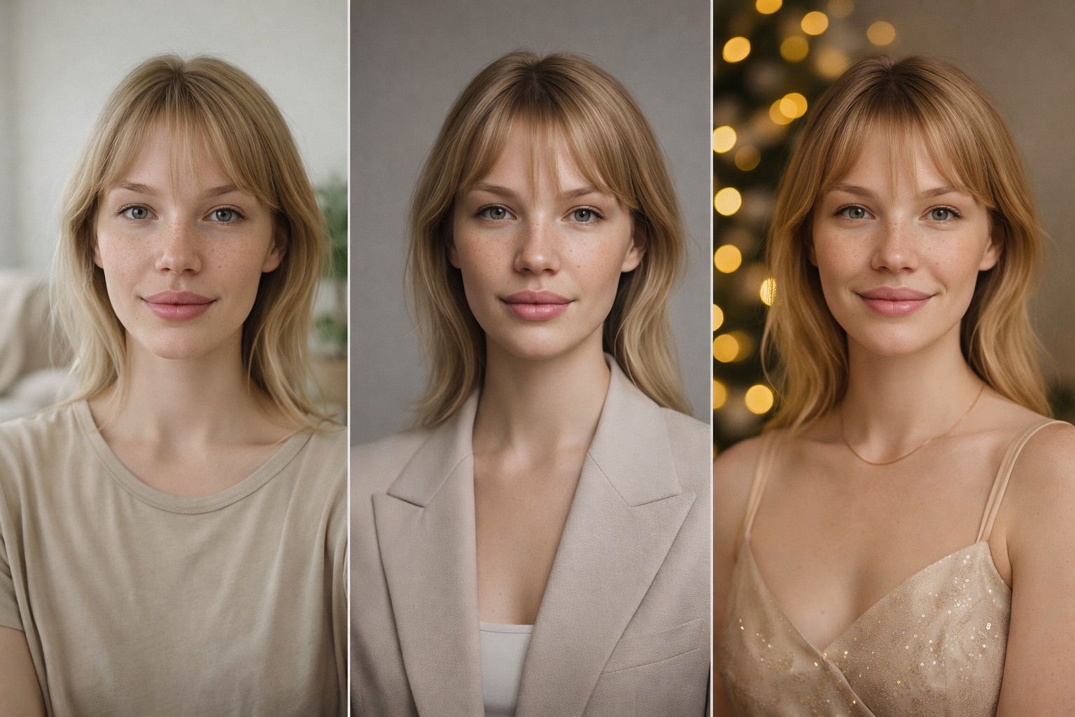 OUTPUT PRIORITY: Узнаваемость лица > естественность эмоции (легкая улыбка) > атмосферность освещения.